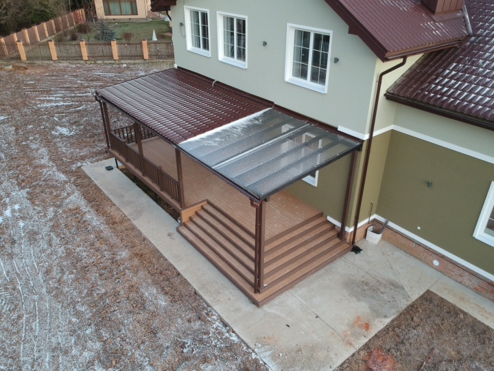 террасы и козырьки из металла и поликарбоната.
